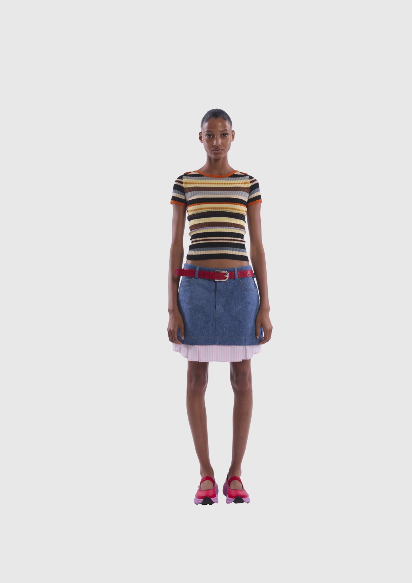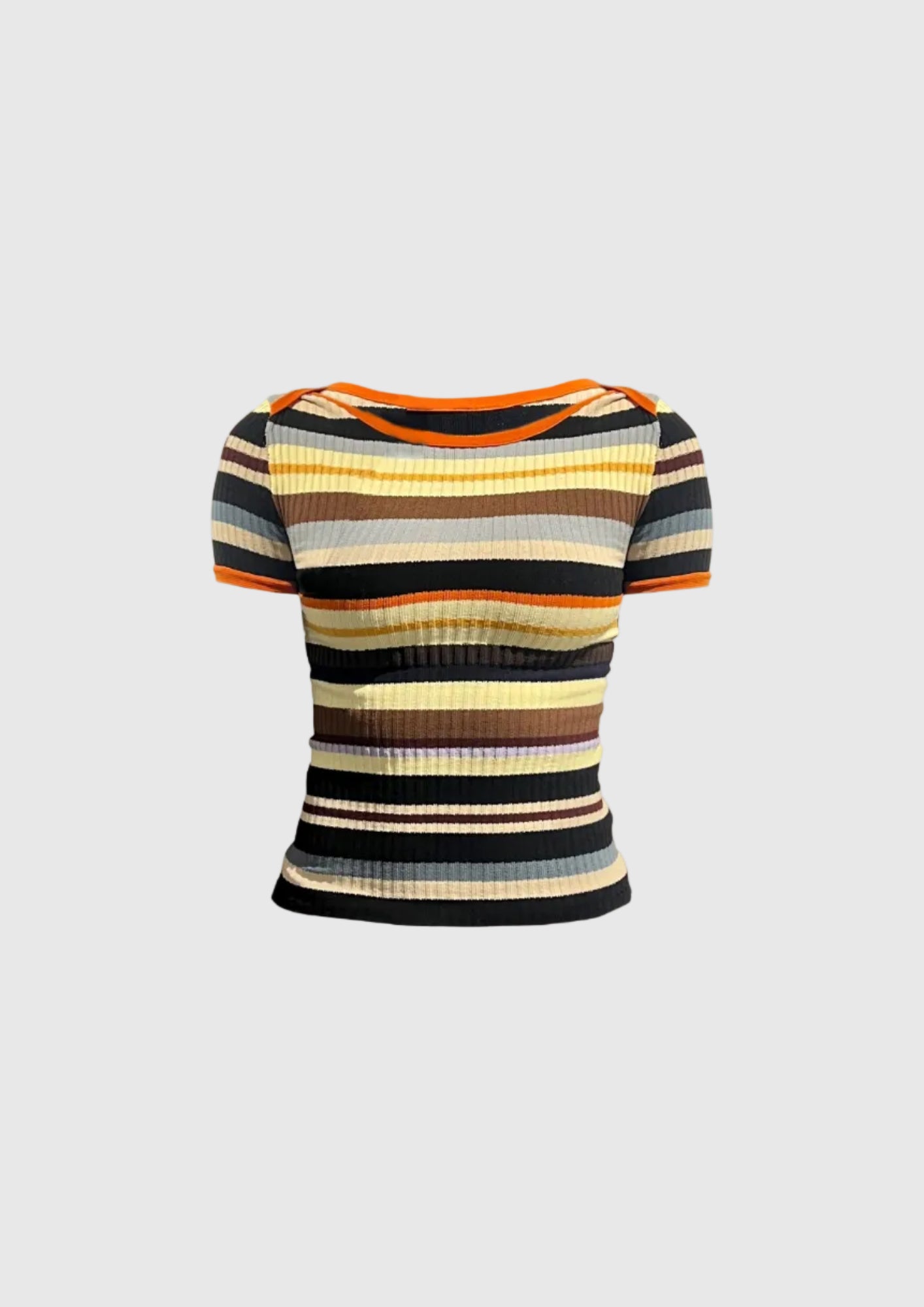 Striped T-Shirt with Wide Neck Press-Stud Should in Stretchy Fabric