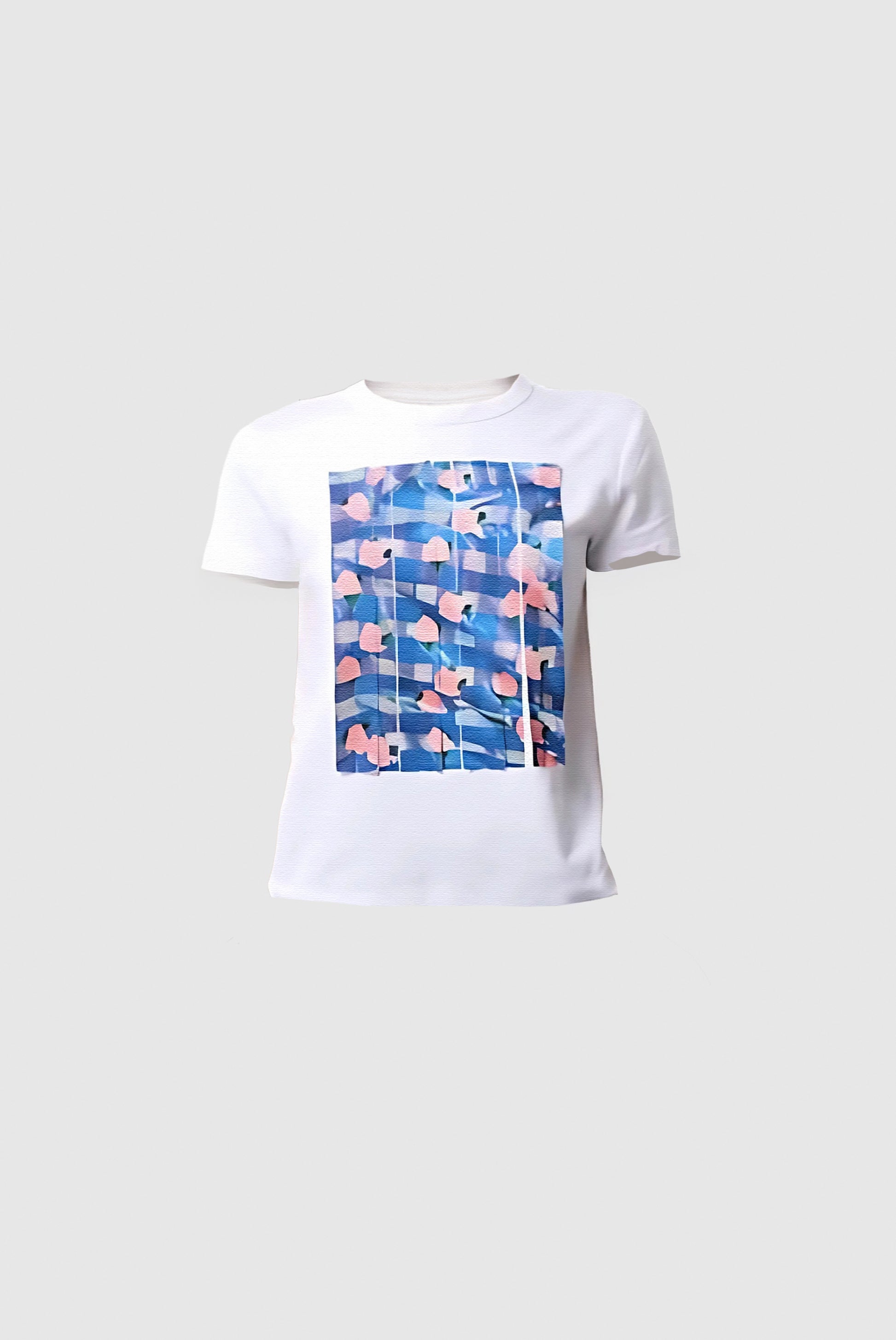 Cotton T-Shirt With A Flower Print And A Cut-And-Stitch Back.