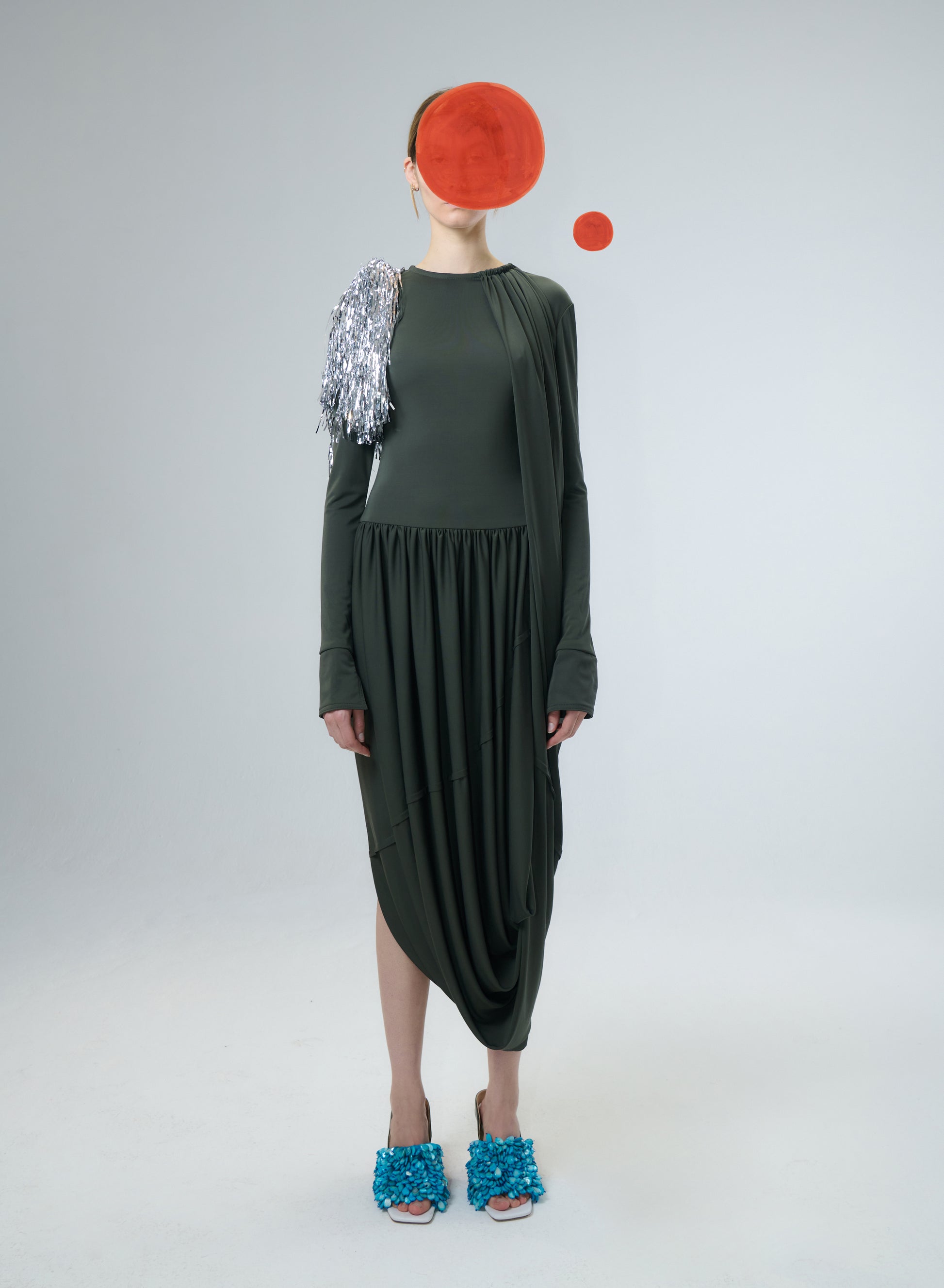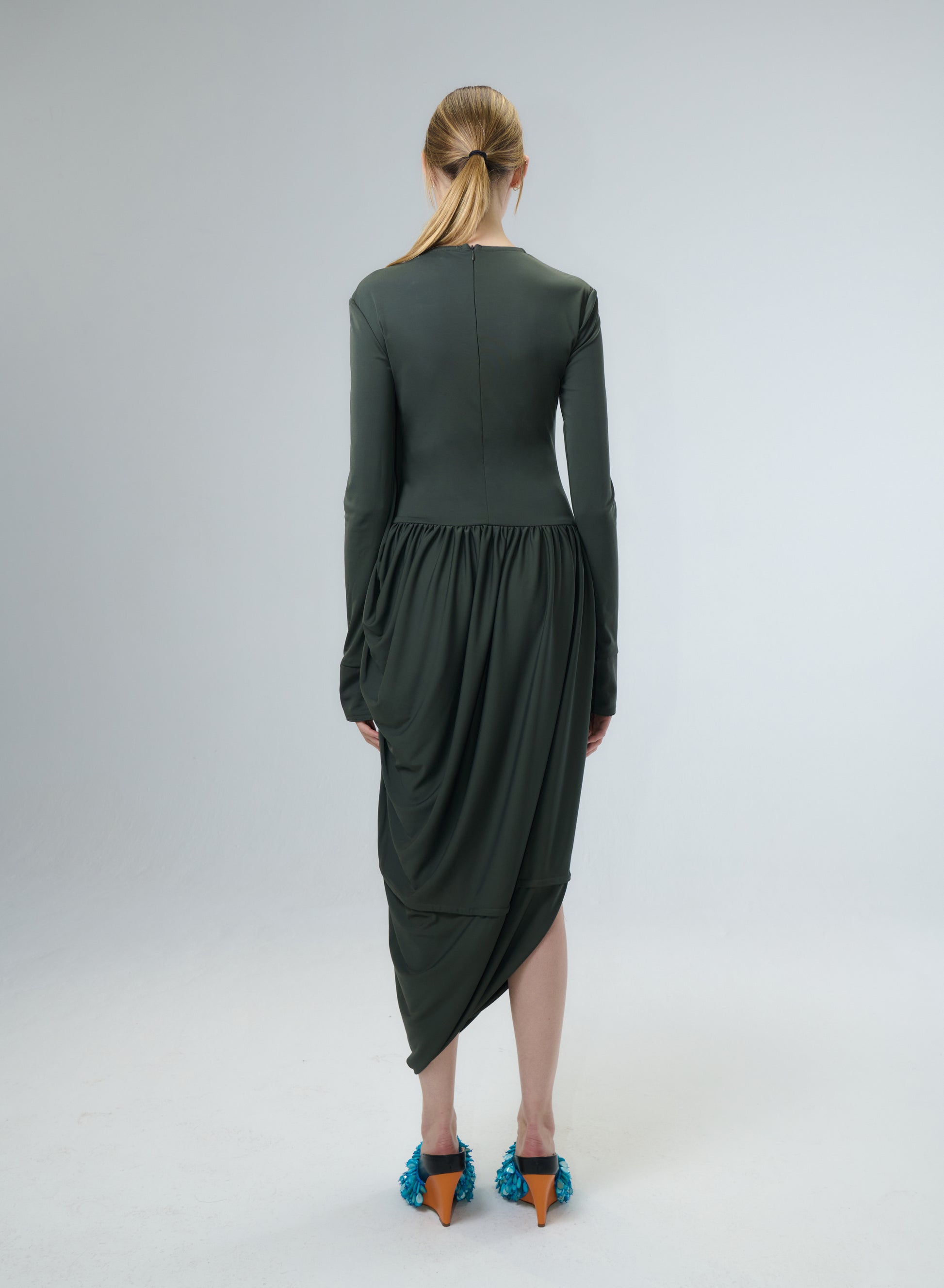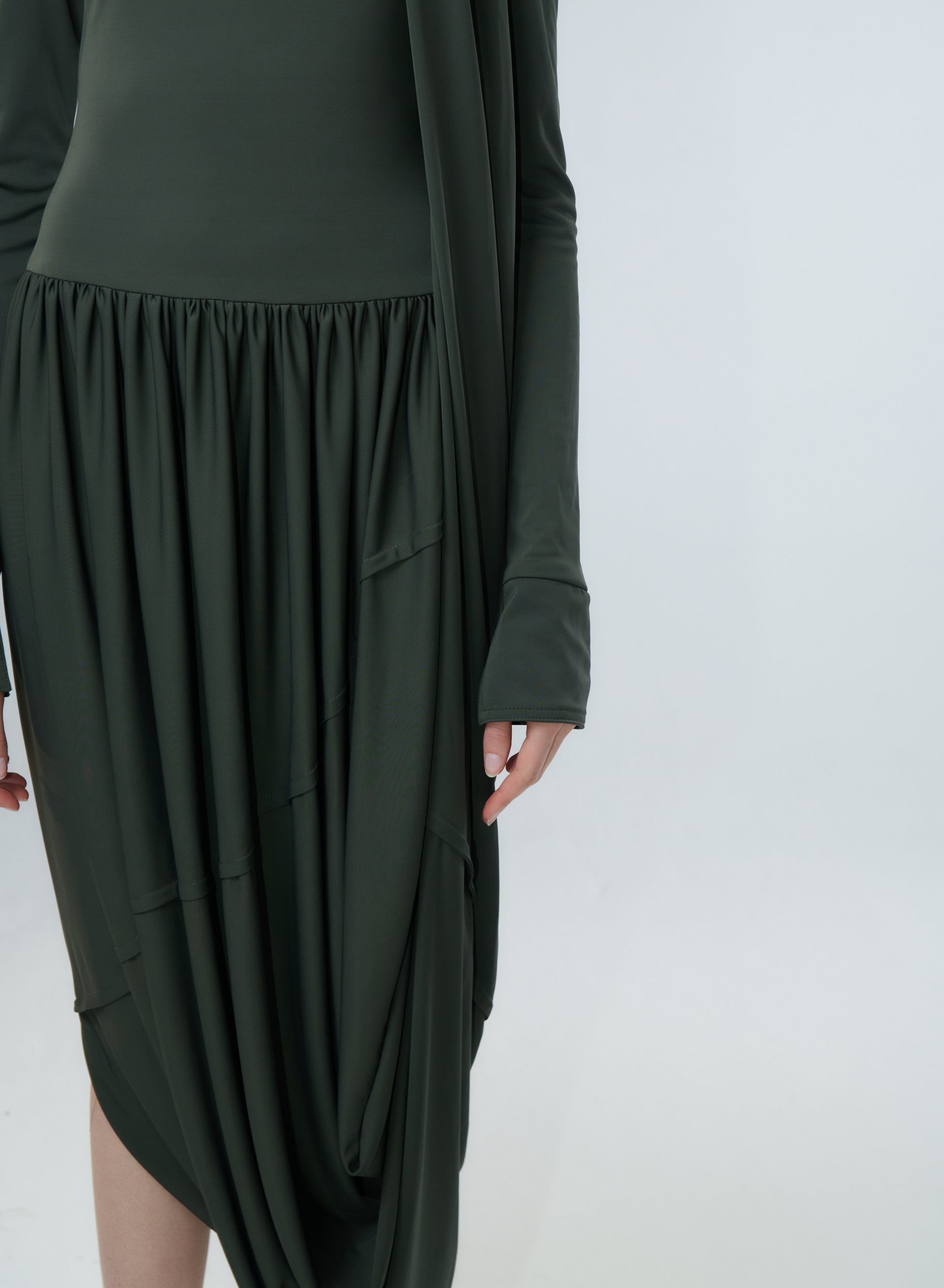 Jersey Dress with draped on the Right Shoulder
