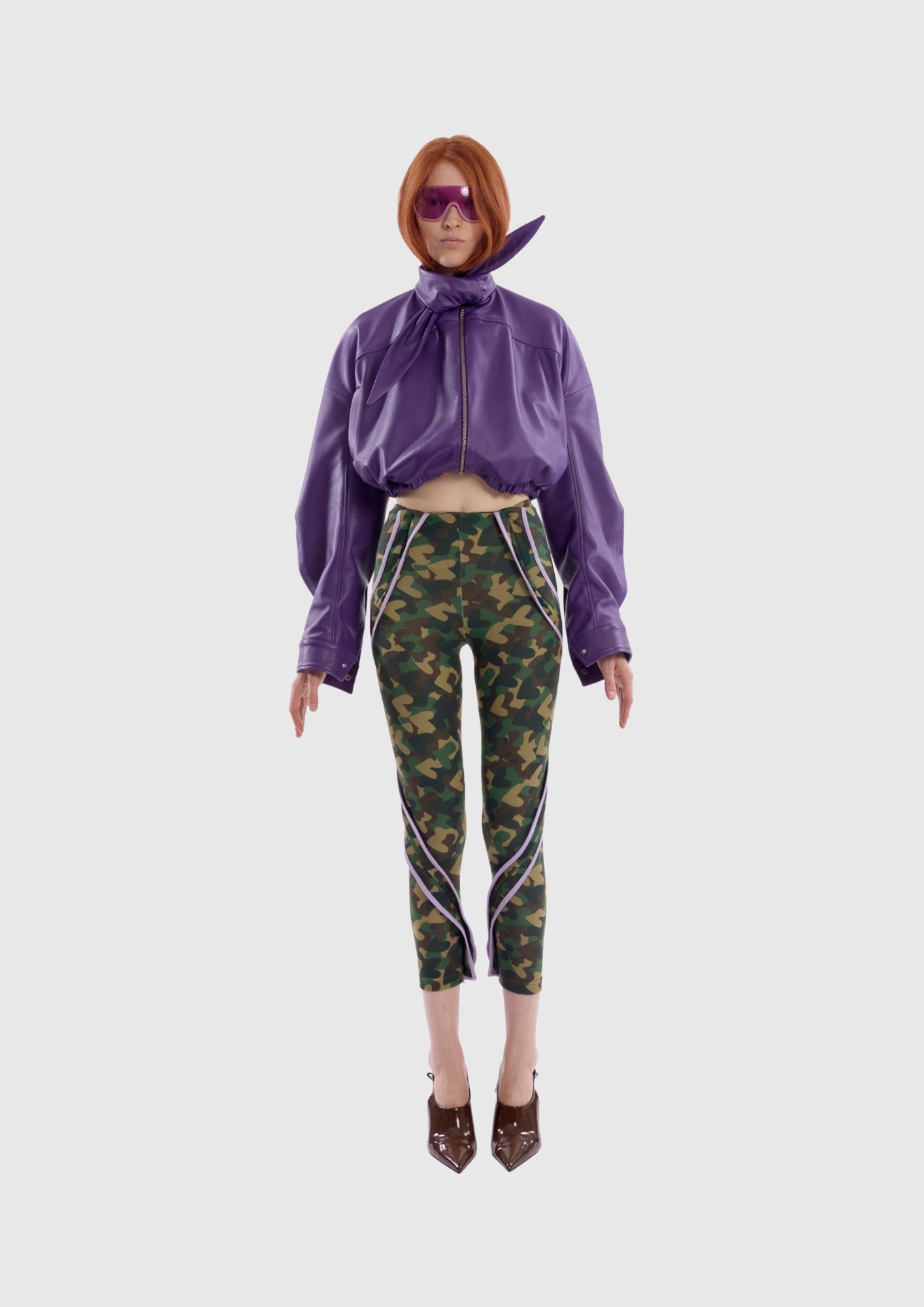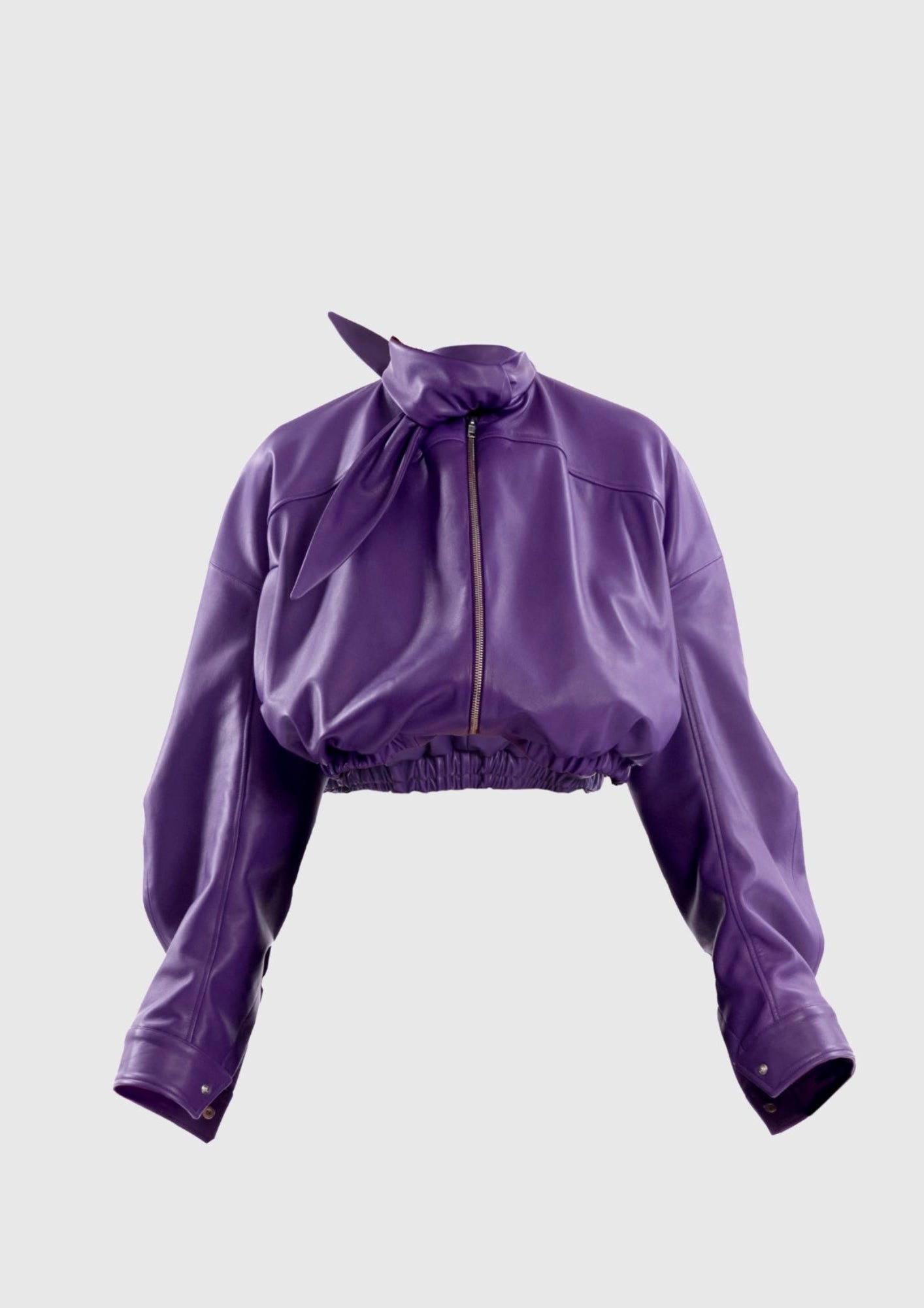 Cropped Leather Jacket With Bow Collar